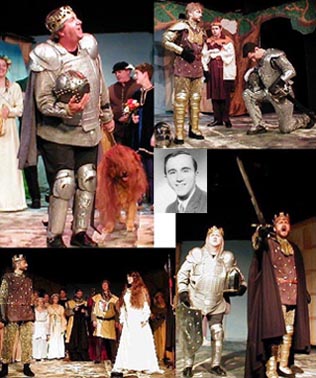 "To reach the unreachable stars--this is my quest." Although the quote that accompanies the photo of former classmate Joe Doyle (inset) in the yearbook is from Man of LaMancha, the montage at left comes from Camelot. Joe first appeared as Mordred when BCHS staged the play. Upper left in the montage he portrays King Pellinore. Directly below is Arthur (George Hartpence) getting ready to watch Guenevere (Caril Thompson, Hartpence's real-life fiancée) be sent to the flames. Upper right, Arthur meeting Sir Lancelot (George Reilly). Below right is King Pellinore with Arthur. Joe is hardly the sole talent in his family. In addition to directing Camelot, wife Cheryl also made the armor and chain mail worn by the knights. "A very clever lass is my Cheryl," according to Joe. We tend to agree.
