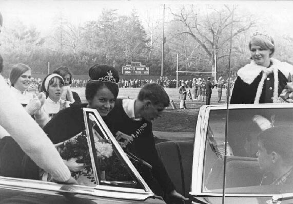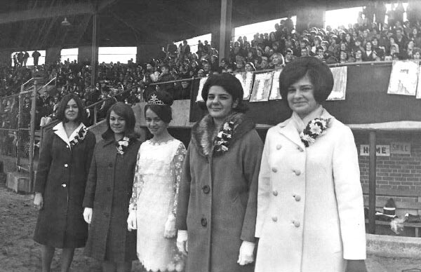 Bristol Central's Gina Mancusi and Bristol Eastern's Mary Beckwith represent their respective schools at the traditional Thanksgiving Day football game in November 1966 at Muzzy Field. |